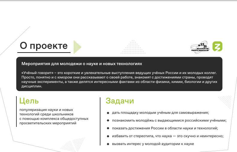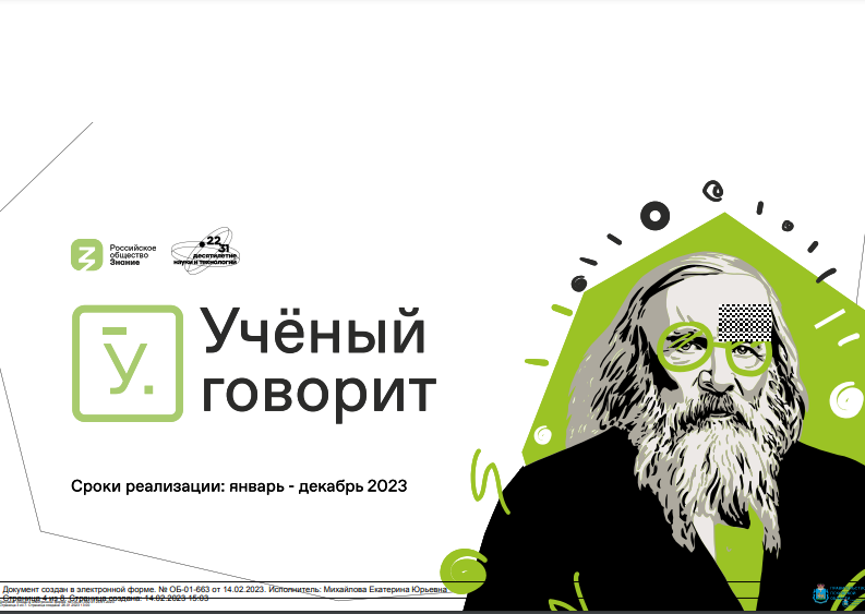 Департамент государственной политики в сфере воспитания, дополнительного образования и детского отдыха Минпросвещения России (далее — Департамент) информирует, что в 2023 году Российским обществом «Знание» совместно с Минпросвещения России запущена Всероссийская акция «Учѐные — в школы» (далее — Акция) для молодых ученых и обучающихся общеобразовательных организаций. Акция направлена на поиск и отбор талантливых лекторов, в рамках которой любой желающий молодой научный деятель может попробовать свои силы в качестве лектора, совершенствовать навыки публичных выступлений, найти свою аудиторию. Образовательные организации могут подать заявку (как площадка) на участие на сайте Акции до 1 февраля 2023 г. (официальный интернет-сайт проекта: https://znanierussia.ru/events/uchenyj-vshko1e-1312).