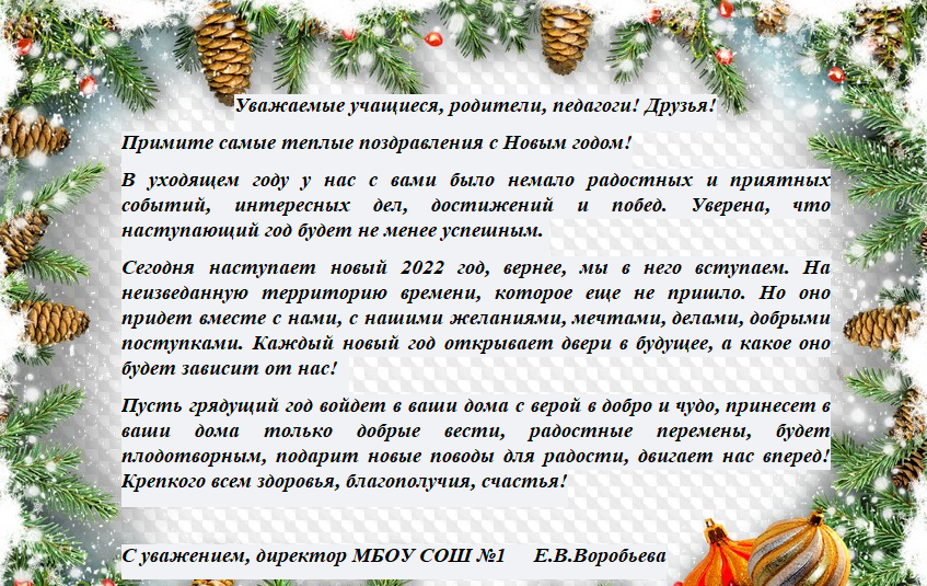 Новогоднее поздравление Воробьевой Елены Вячеславовны